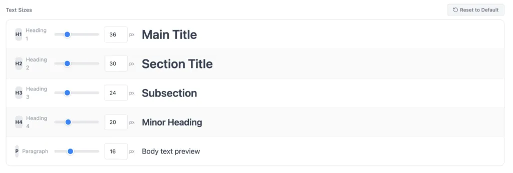 Under Text Sizes, you can customize: