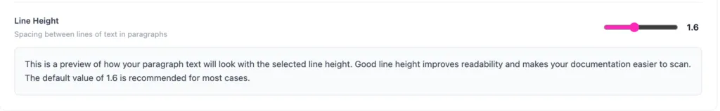 Line Height controls the vertical spacing between lines of text in your documentation. Adjusting it helps improve readability and makes long content easier to scan.