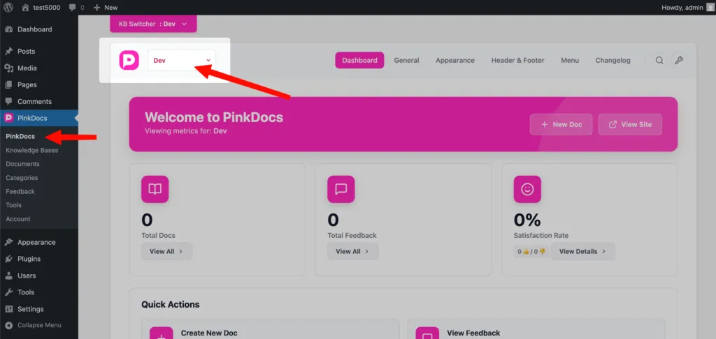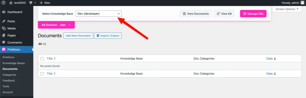 How to Switch Knowledgebase Inside PinkDocs Settings