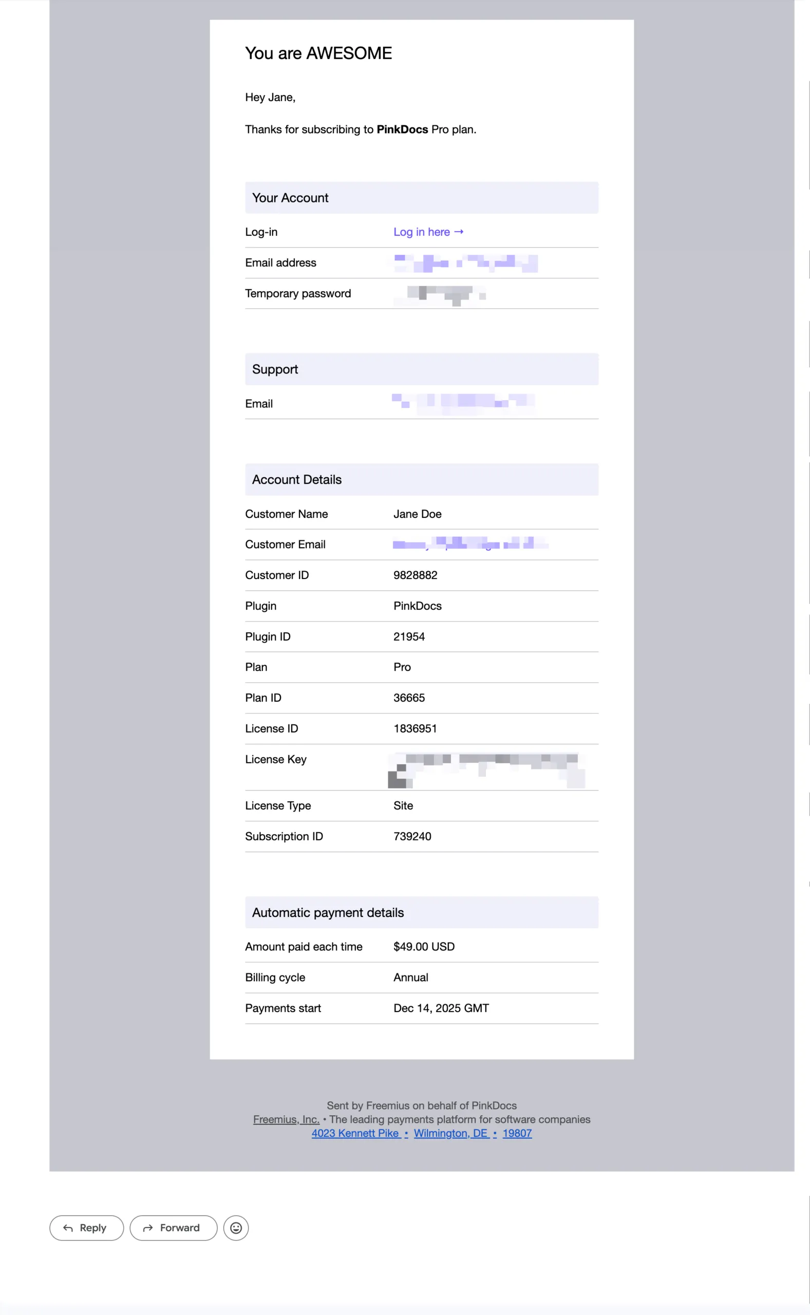 Upon successful purchase, you will receive an email confirmation containing your license key. This key is essential for activating your PinkDocks software.