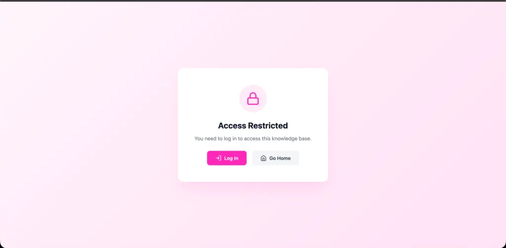 This is how the knowledge base will appear on the frontend to an unauthorized user, where access is restricted and the content is not visible.