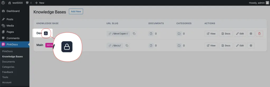 - Go to WordPress Admin → PinkDocs → Knowledge Bases